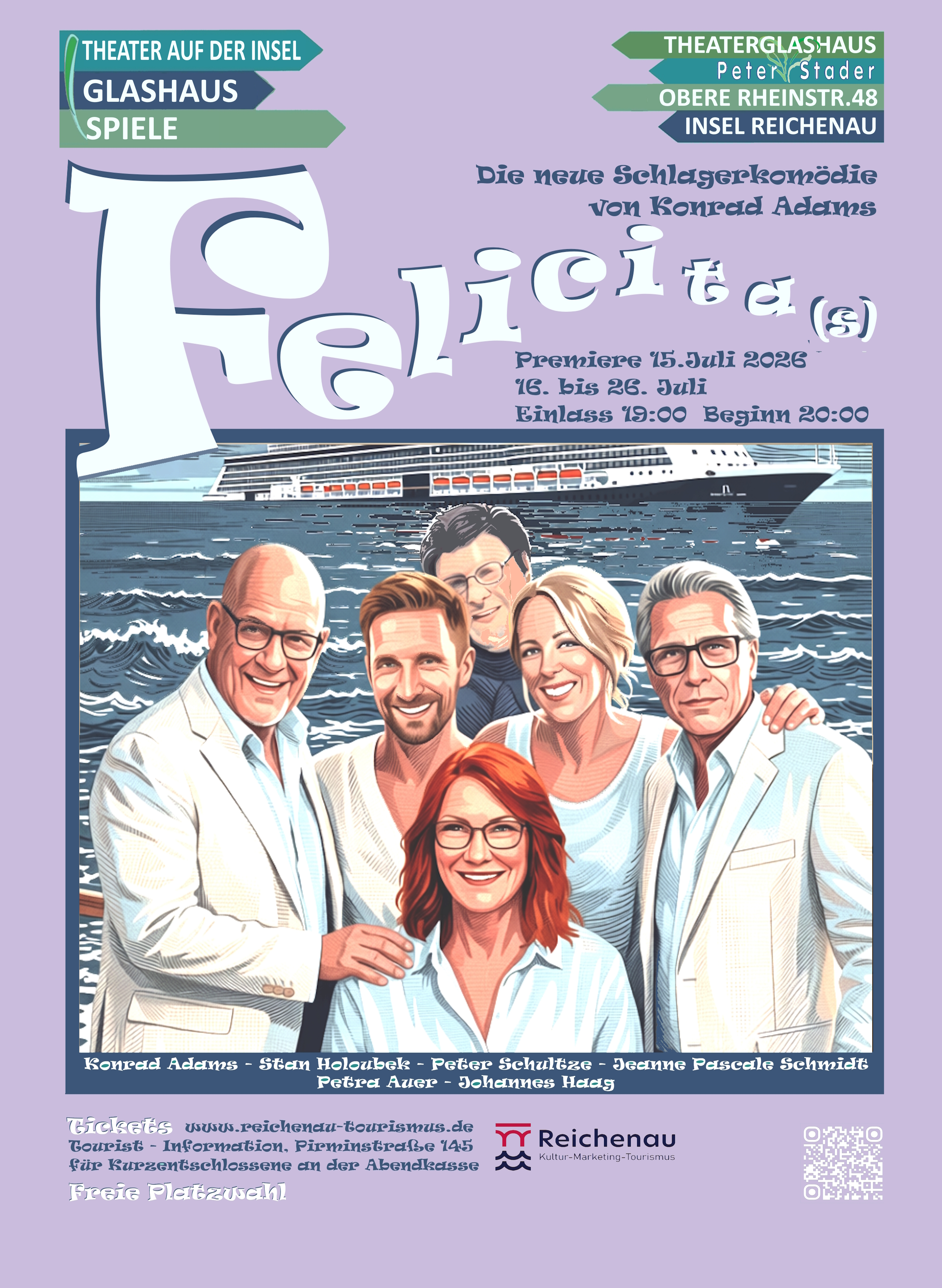 "Felicita (s)" - erzählt die turbulente Geschichte von zwei Ehepaaren, die während einer Kreuzfahrt aufeinander treffen. Michael und Felicitas, einst verheiratet und nun geschieden , entdecken auf hoher See erneut ihre Gefühle füreinander. Ihre jeweiligen neuen Partner, Marina und Thomas, begegnen einander gleichzeitig, zunächst jedoch recht ahnungslos. Die Handlung entfaltet sich zwischen dem Oberdeck und einem spontanen Landausflug an der Amalfi-Küste und gipfelt in einem absurd-romantischen Tumult auf einer typisch italienischen Piazza. Die Begegnung der beiden Paare auf dem Dorfplatz wird zu einer Bühnen-Explosion - emotional, aber leichtfüßig. Hier verlieren die Paare nicht nur ihre Ringe, sondern auch die Kontrolle über ihre Emotionen. Der Kreuzfahrtdirektor sorgt mit seinen heiteren Durchsagen ebenfalls für komische Akzente auf der neoDRAMATICA und es gibt auch noch einige Überraschungsgäste an Bord. Ein Stück über Liebe, Chaos, zweite Chancen und die Komik des Lebens - für ein Publikum, das über jede Menge menschliche Torheiten lachen möchte. Den musikalischen Rahmen bilden diesmal italienische Evergreens von Komm ein bißchen mit nach Italien über die Capri Fischer und Azzurro bis hin zu L´Italiano und Felicitá.