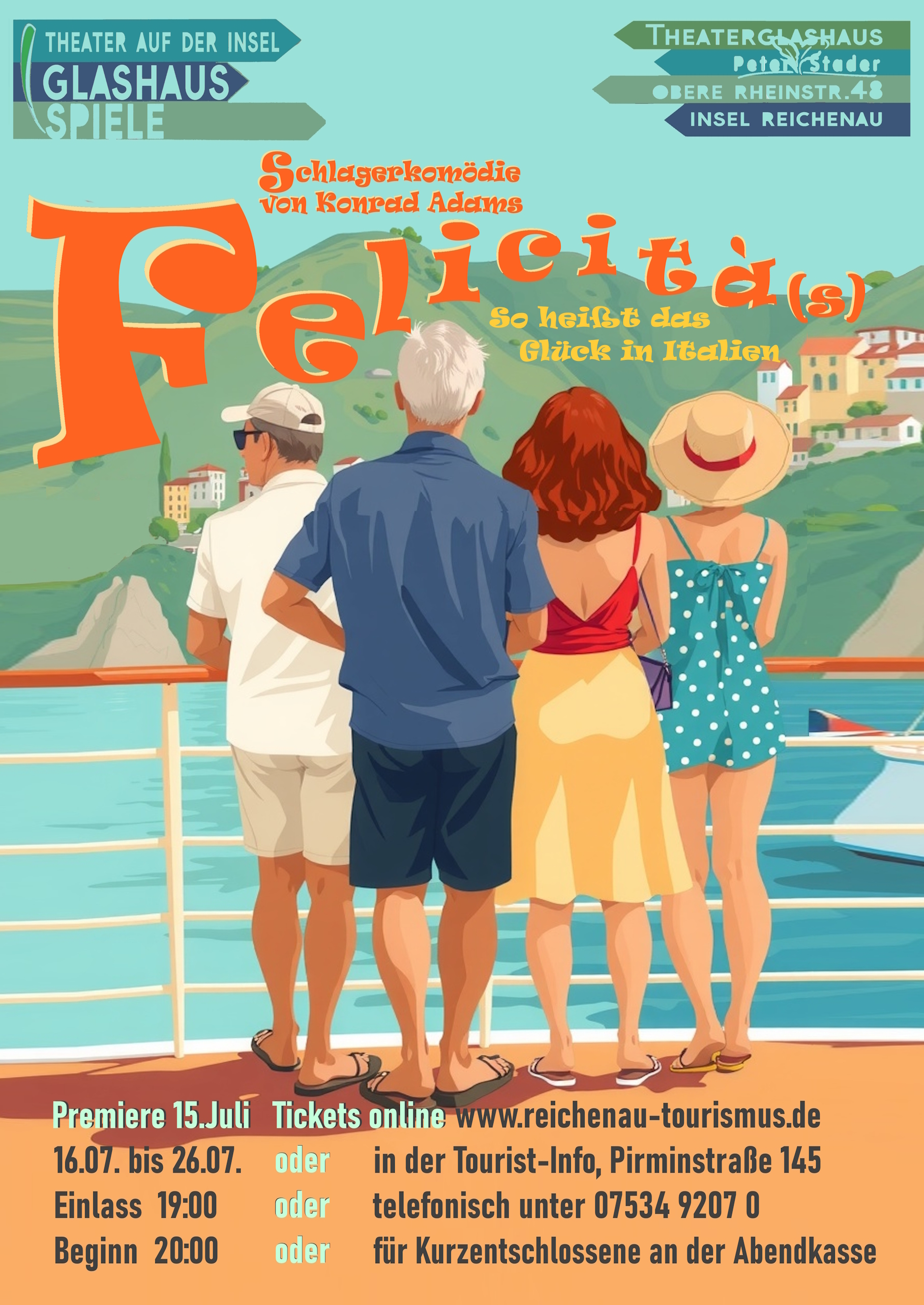 Erzählt wird die Geschichte eines ehemaligen Ehepaares, das auf einer Kreuzfahrt zufällig aufeinander trifft. Michael und Felicitas entdecken auf hoher See wieder ihre Gefühle füreinander. Ihre neuen Partner, Maria und Thomas, begegnen einander gleichzeitig - erst ahnungslos und später mehr als irritiert . Die Handlung entfaltet sich zwischen Oberdeck und Landausflug an der Amalfi-Küste und gipfelt in einem absurd-romantischen Chaos auf einer typisch italienischen Piazza. Dort lösen sich sämtliche Missverständnisse auf charmant-heitere Weise auf. Ein Stück über die Liebe, verlorene Eheringe, zweite Chancen und die Komik des Lebens - für ein Publikum, das über allzu menschliche Torheiten lachen möchte. Den musikalischen Rahmen bilden diesmal jede Menge italienische Schlager-Oldies wie "L´Italiano", "Azzurro" oder das stimmungsvolle "Ciao Ciao Bambina".