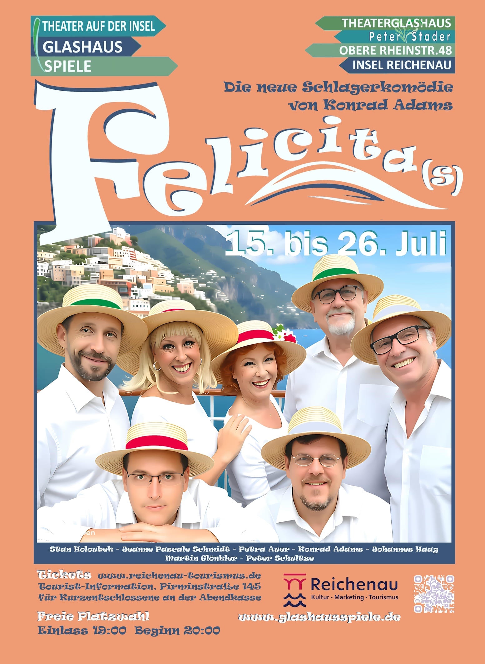 "Felicita (s)" - erzählt die turbulente Geschichte von zwei Ehepaaren, die während einer Kreuzfahrt aufeinander treffen. Michael und Felicitas, einst verheiratet und nun geschieden , entdecken auf hoher See erneut ihre Gefühle füreinander. Ihre jeweiligen neuen Partner, Marina und Thomas, begegnen einander gleichzeitig, zunächst jedoch recht ahnungslos. Die Handlung entfaltet sich zwischen dem Oberdeck und einem spontanen Landausflug an der Amalfi-Küste und gipfelt in einem absurd-romantischen Tumult auf einer typisch italienischen Piazza. Die Begegnung der beiden Paare auf dem Dorfplatz wird zu einer Bühnen-Explosion - emotional, aber leichtfüßig. Hier verlieren die Paare nicht nur ihre Ringe, sondern auch die Kontrolle über ihre Emotionen. Der Kreuzfahrtdirektor sorgt mit seinen heiteren Durchsagen ebenfalls für komische Akzente auf der neoDRAMATICA und es gibt auch noch einige Überraschungsgäste an Bord. Ein Stück über Liebe, Chaos, zweite Chancen und die Komik des Lebens - für ein Publikum, das über jede Menge menschliche Torheiten lachen möchte. Den musikalischen Rahmen bilden diesmal italienische Evergreens von Komm ein bißchen mit nach Italien über die Capri Fischer und Azzurro bis hin zu L´Italiano und Felicitá.